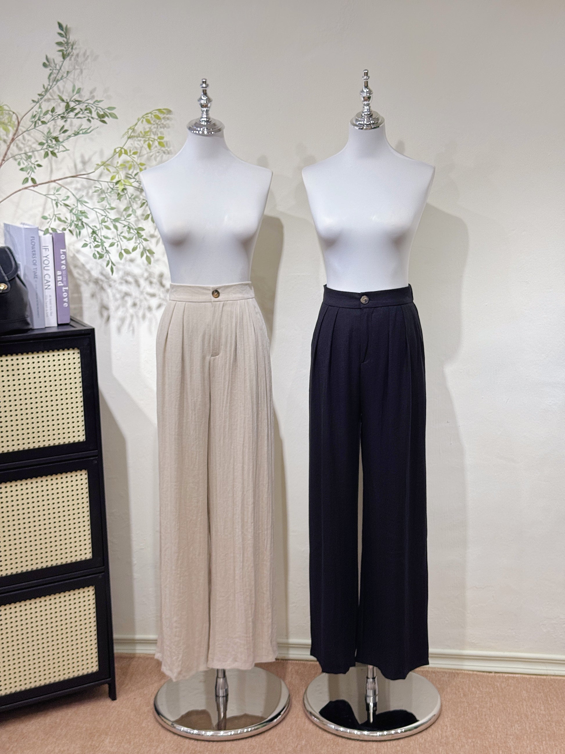 This two-piece set features a structured bustier top with an asymmetric hemline, anti-slip strip, and a smocked back for comfort. A hidden side zipper ensures a sleek fit. Paired with straight-leg trousers designed with a button-and-zip closure, elastic waistband detail, and side pockets, this set combines modern structure with effortless wearability.