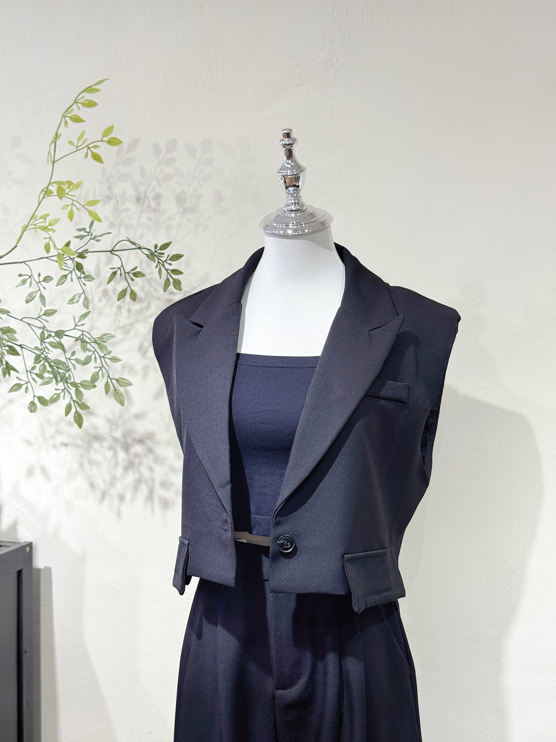 The vest’s boxy silhouette and subtle shoulder pads add structure, while the trousers’ half-elastic waistband ensures comfort all day.