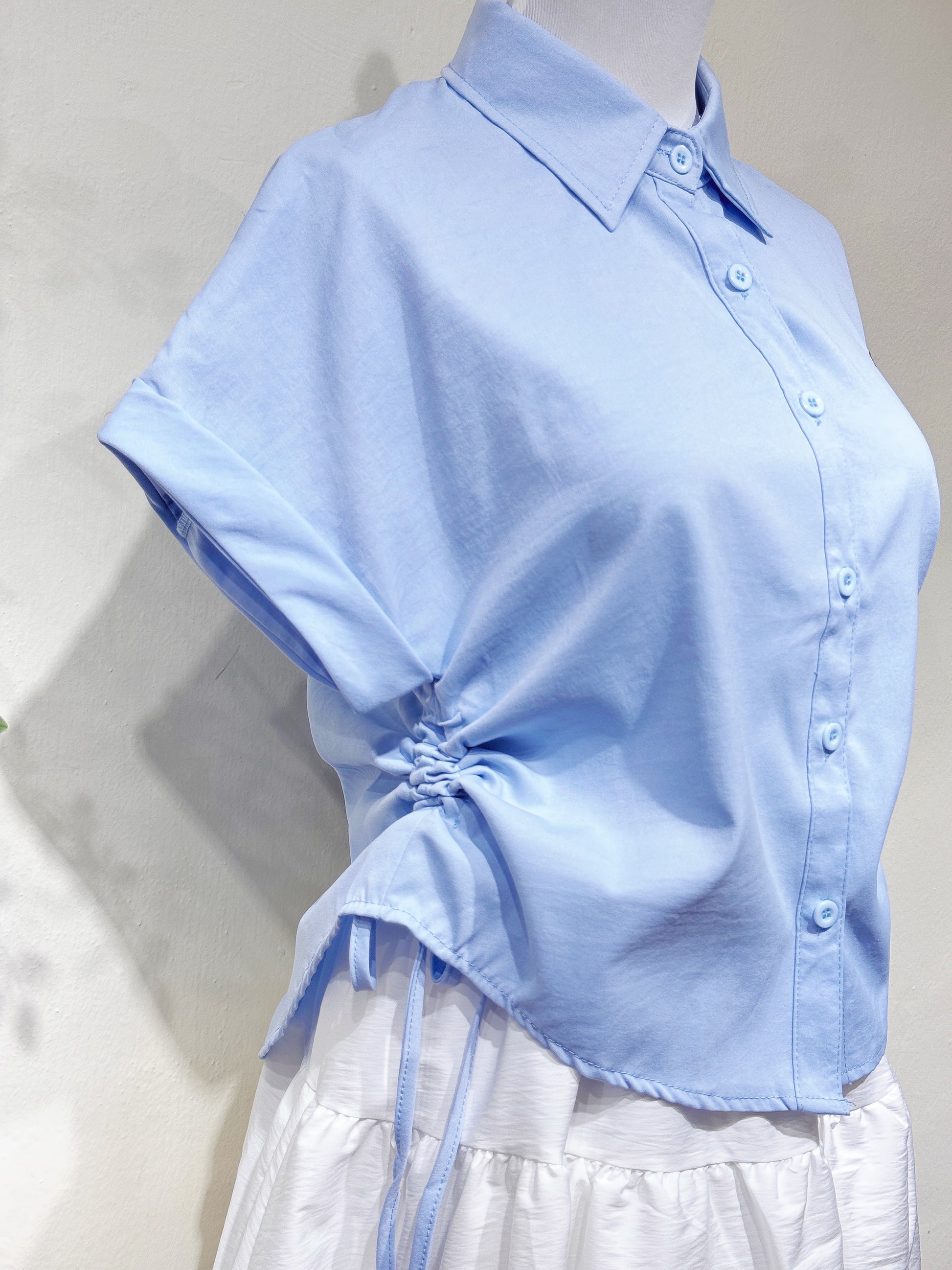 A refreshing twist on the classic polo. Designed with a breathable fabric and a button-down front, this short-sleeve shirt features cuffed sleeves and subtle embroidered mini logo detail at the side. Adjustable drawstrings at the hem allow you to style it with ease, giving a polished yet relaxed look for everyday wear.